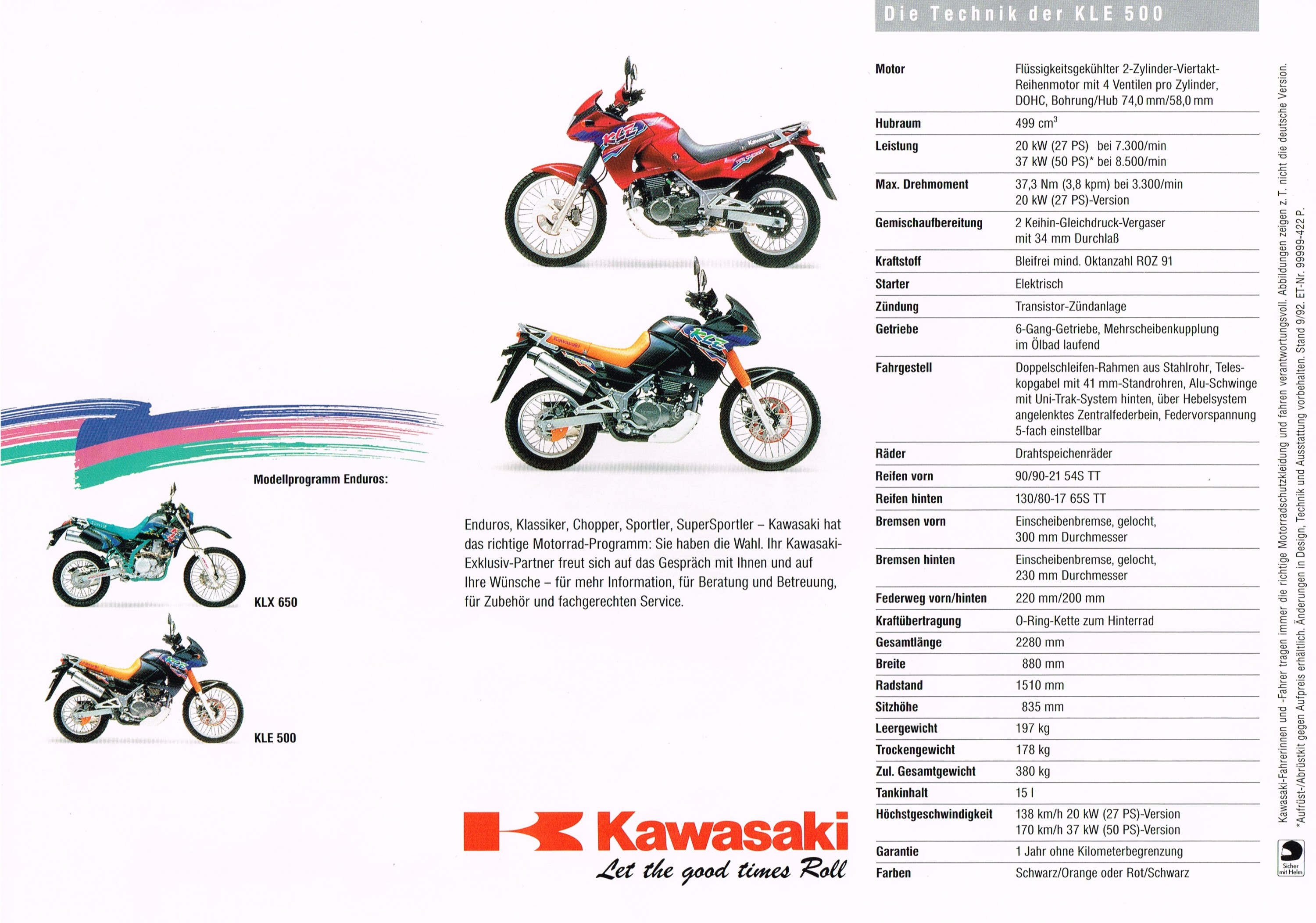 Interessanterweise, war dort als Farbe noch schwarz/orange angegeben. Die 93er erschien in Deutschland aber ausschließlich in grün/orange. Ferner wurde im Prospekt die 34 PS-Version nicht erwähnt.